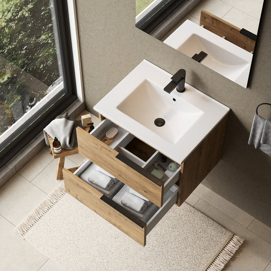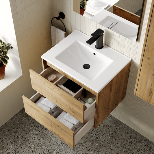 Milan 600mm Wall Hung Vanity Unit with Basin - Ostippo OakRegular price £549.99Regular priceUnit price / per-
