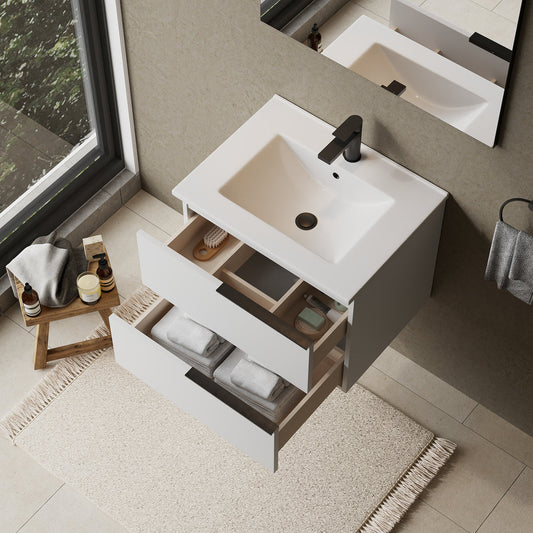 Milan 600mm Wall Hung Vanity Unit with Basin - Matt WhiteRegular price £549.99Regular priceUnit price / per-