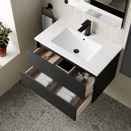 Milan Noir 800mm Wall Hung Vanity Unit with Basin - Matt BlackRegular price £624.99Regular priceUnit price / per-