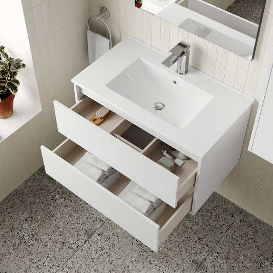 Milan 800mm Wall Hung Vanity Unit with Basin - Matt WhiteRegular price £624.99Regular priceUnit price / per-