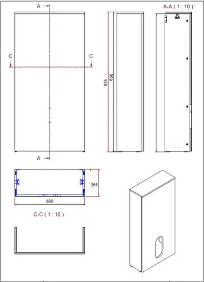 With dimensions of Height: 850mm, Width: 600mm, and Depth: 265mm, this unit is designed to fit seamlessly into your bathroom layout.