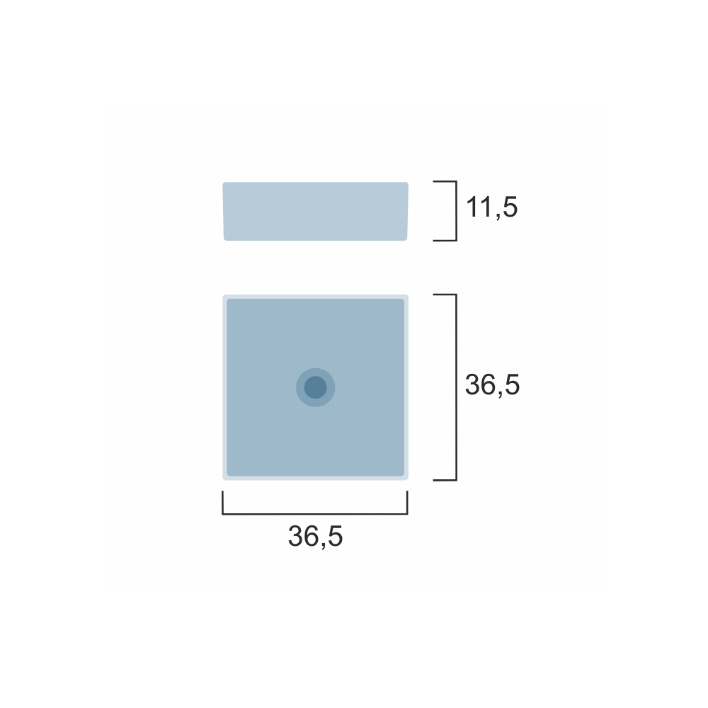 Dimensions: 365mm (W) x 365mm (D) x 115mm (H)